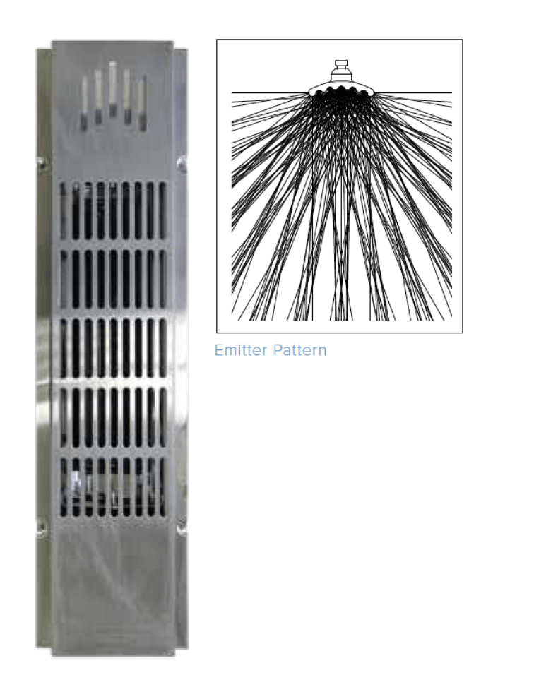 • Requires on average (1) emitter per 14 cubic ft